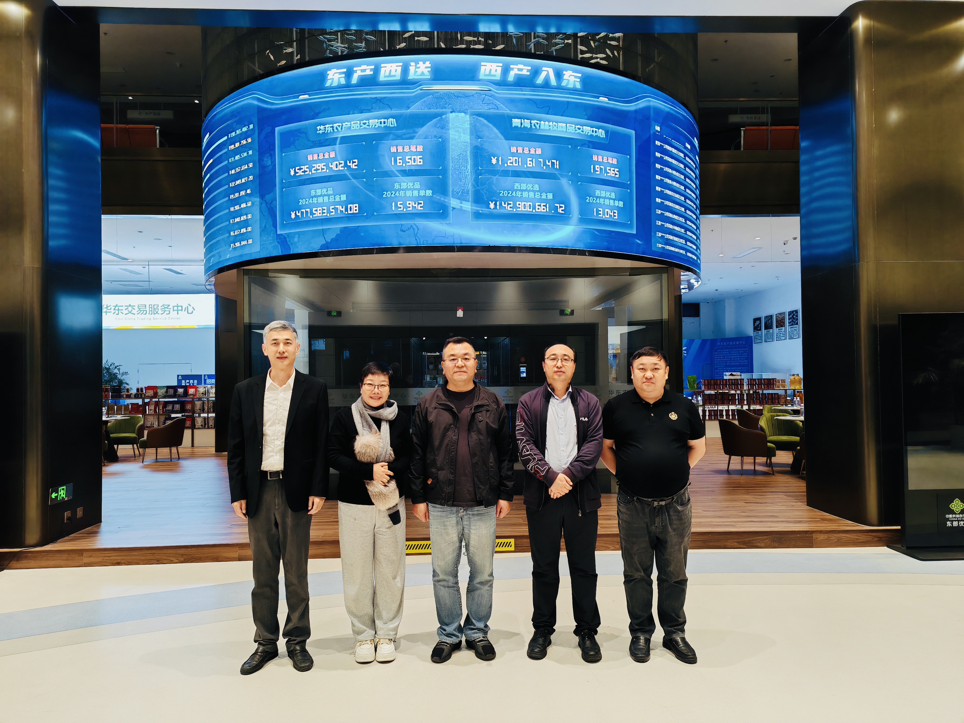 簽約儀式后,新立訊科技集團董事長(兼青海、華東、川藏交易中心董事長)毛霖,與各單位出席簽約代表共同參觀華東農產(chǎn)品交易中心。