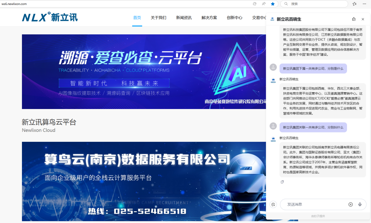 通過適配融合DeepSeek大模型進行接入官網(wǎng)(新立訊百曉生)以及新立訊公眾號(新立訊智多星)等,依靠大模型構(gòu)建企業(yè)知識庫,整合內(nèi)部眾多知識關(guān)鍵節(jié)點,為內(nèi)部和外部信息數(shù)據(jù)共享提供便利,并實現(xiàn)企業(yè)業(yè)務(wù)咨詢的秒級響應(yīng),大幅提升溝通效率。
