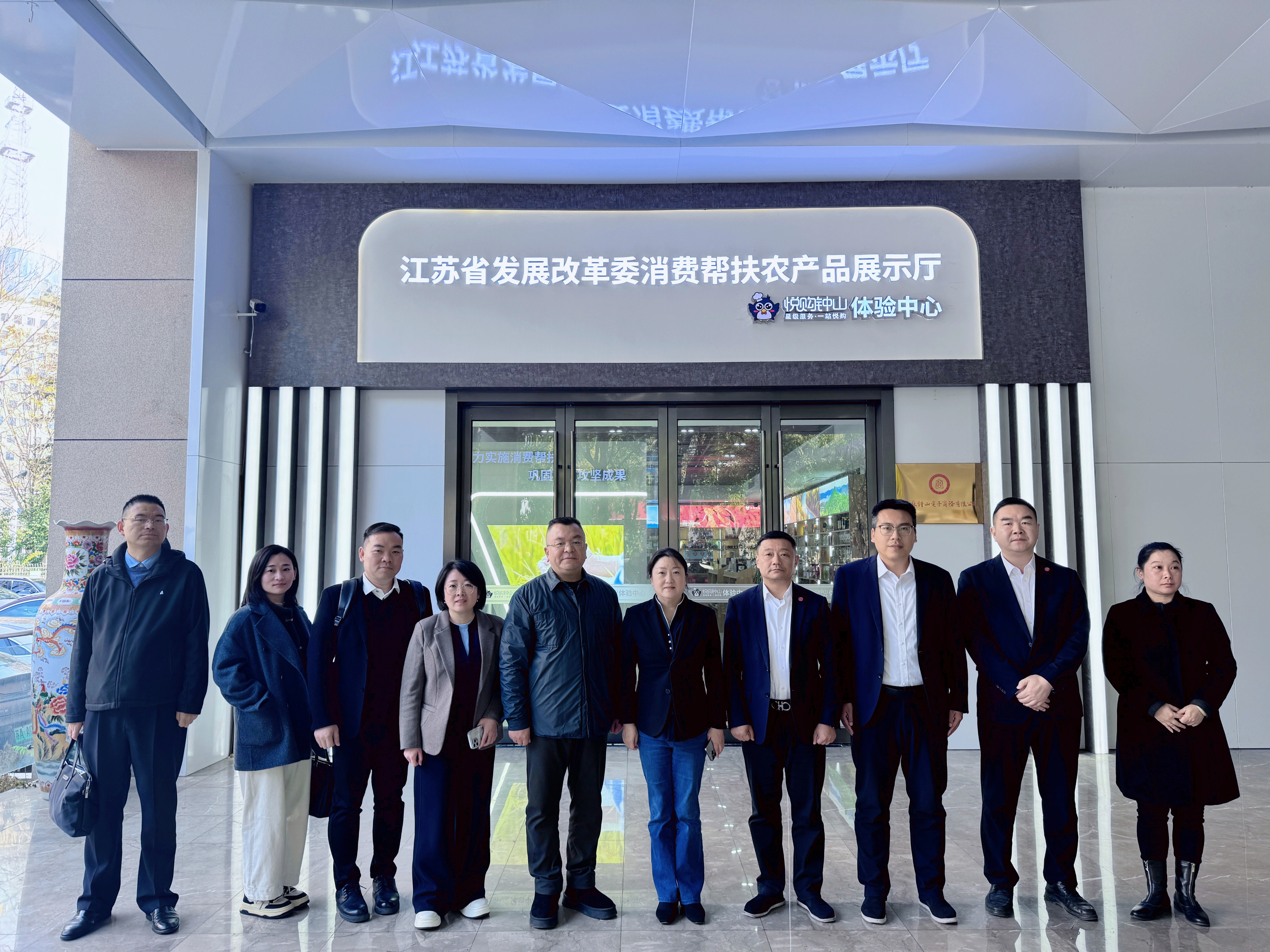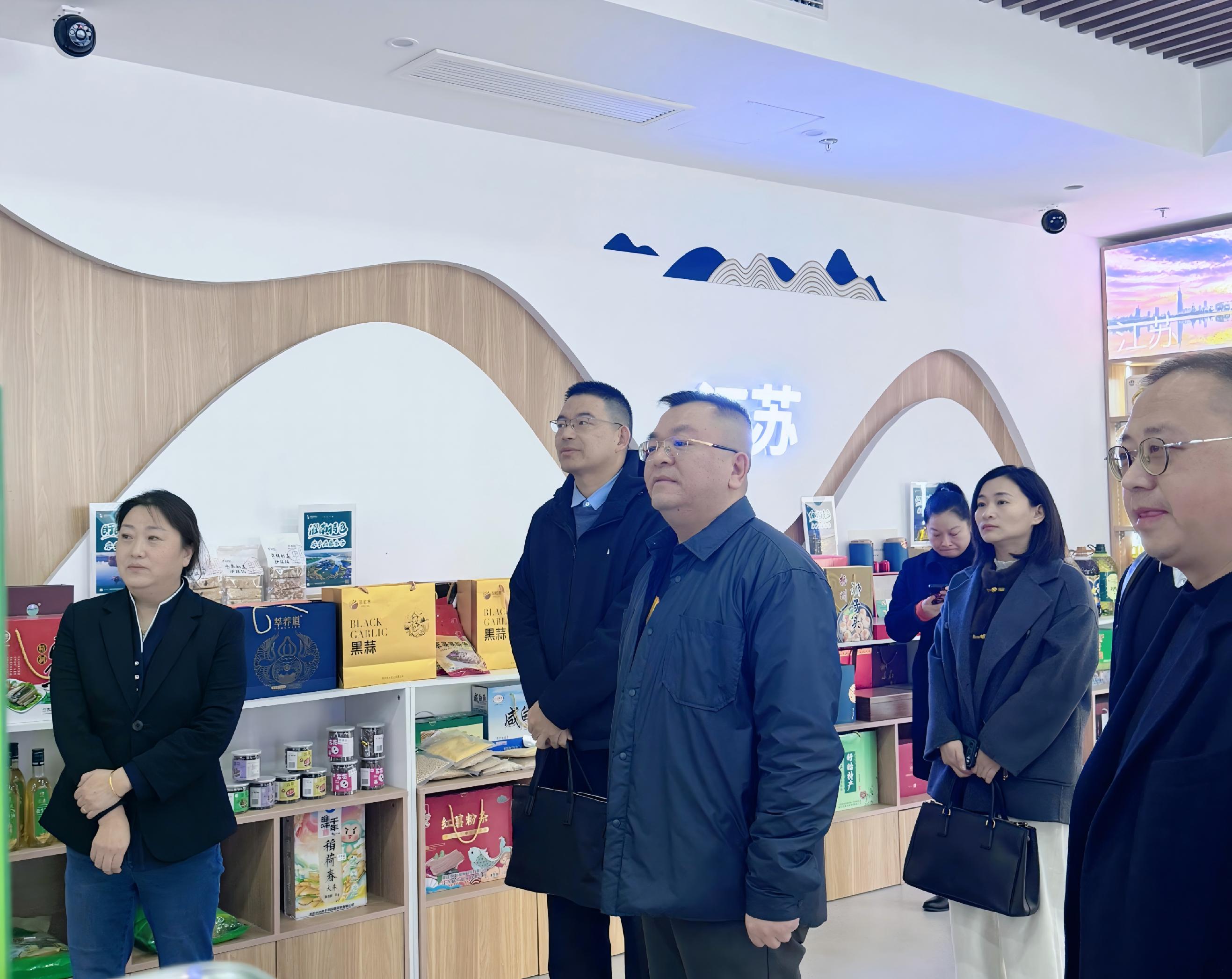座談前,大家參觀了江蘇省發(fā)展改革委消費幫扶農(nóng)產(chǎn)品展示廳悅購鐘山體驗中心。展廳由江蘇鐘山賓館集團有限公司與江蘇省發(fā)改委聯(lián)合打造,集展示、體驗、銷售、洽談于一體,設有農(nóng)產(chǎn)品展示區(qū)、云上專區(qū)、品鑒區(qū)及直播區(qū),通過“線上+線下”融合,為東西部農(nóng)產(chǎn)品搭建直通長三角市場橋梁和紐帶。
