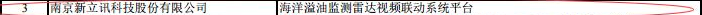 2017年6月22日,經(jīng)過區(qū)(開發(fā)區(qū))推薦、主管部門審核和專家評(píng)審等程序,南京新立訊科技股份有限公司-----“海洋溢油監(jiān)測(cè)雷達(dá)視頻聯(lián)動(dòng)系統(tǒng)平臺(tái)項(xiàng)目”榮獲南京市軟件和信息服務(wù)業(yè)發(fā)展專項(xiàng)資金。該平臺(tái)通過擴(kuò)展和集成海域望遠(yuǎn)高清視頻監(jiān)控、多用途微波雷達(dá)、AIS、電子海圖系統(tǒng)、海洋浮標(biāo)、衛(wèi)星遙感等多種監(jiān)視監(jiān)測(cè)手段和信息采集方式構(gòu)成海域綜合立體多維感知監(jiān)視監(jiān)測(cè)大系統(tǒng),形成綜合性多系統(tǒng)智能信息融合。同時(shí),該專項(xiàng)資金的獲得既是對(duì)新立訊在“藍(lán)色海洋”領(lǐng)域深度拓展的充分肯定,也激勵(lì)新立訊進(jìn)一步增強(qiáng)該平臺(tái)在海上能源領(lǐng)域的應(yīng)用效能。