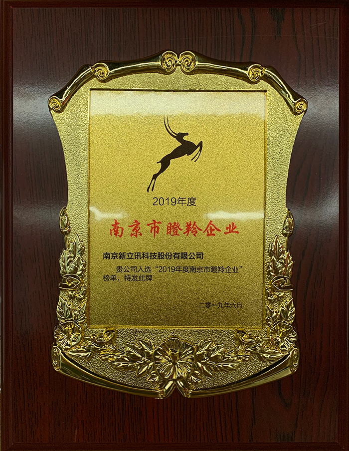 南京市委常委、常務(wù)副市長楊學(xué)鵬發(fā)布了《2019年南京市獨(dú)角獸、培育獨(dú)角獸、瞪羚企業(yè)名單及白皮書》,并為新增獨(dú)角獸、培育獨(dú)角獸代表、瞪羚企業(yè)代表頒發(fā)獎(jiǎng)杯和獎(jiǎng)牌。南京新立訊科技股份有限公司獲得“2019年度南京市瞪羚企業(yè)”榮譽(yù)稱號(hào)。