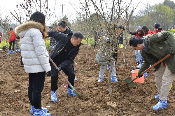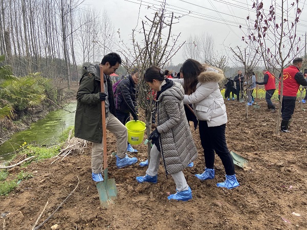 為切實踐行習近平總書記“綠水青山就是金山銀山”發(fā)展理念,黨員代表積極參與植樹節(jié)活動,扶正樹苗、揮鍬鏟土、培土夯實、澆水灌溉……大家熱情高漲,忙的不亦樂乎,經過幾個小時的努力栽種,一棵棵垂絲海棠、二喬玉蘭迎風挺立,所有樹苗全部栽培到位,大家紛紛掛上各自署名的植樹認養(yǎng)牌,期待著這些樹苗茁壯成長,我們的自然環(huán)境也越來越綠色生態(tài)。