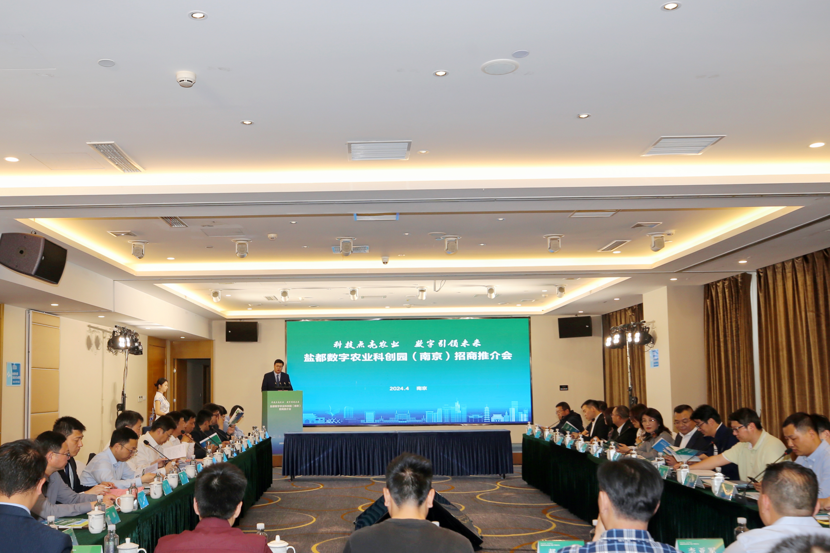 2024年4月25日,“科技點亮農(nóng)業(yè)、數(shù)字引領(lǐng)未來”鹽都數(shù)字農(nóng)業(yè)科創(chuàng)園(南京)招商推介會在南京雨花錦江都城酒店召開。鹽都區(qū)人民政府副區(qū)長孫高明,鹽都區(qū)農(nóng)業(yè)農(nóng)村局局長劉志貴,鹽都區(qū)供銷合作社黨委書記、主任吉連生,鹽都區(qū)國控集團(鮮之都集團)董事長李杰,鹽都區(qū)鹽瀆街道黨委書記蔣國興,鹽瀆街道黨委副書記徐博,南京郵電大學(xué)高性能研究所所長、博士生導(dǎo)師季一木教授,浙江大學(xué)海洋學(xué)院博士生導(dǎo)師張帆教授,新立訊科技集團董事長(兼青海、華東交易中心董事長)毛霖,江蘇印加新能源科技股份公司董事長毛海娟,華東農(nóng)產(chǎn)品交易中心副總經(jīng)理楊慶慶,中山沃通電子科技公司董事長王德勝,深圳朗道智通(農(nóng)業(yè)機器人)技術(shù)總監(jiān)何灝,農(nóng)芯(南京)智慧農(nóng)業(yè)研究院院長吳文彪等企業(yè)代表、專家及嘉賓60余人出席參會。