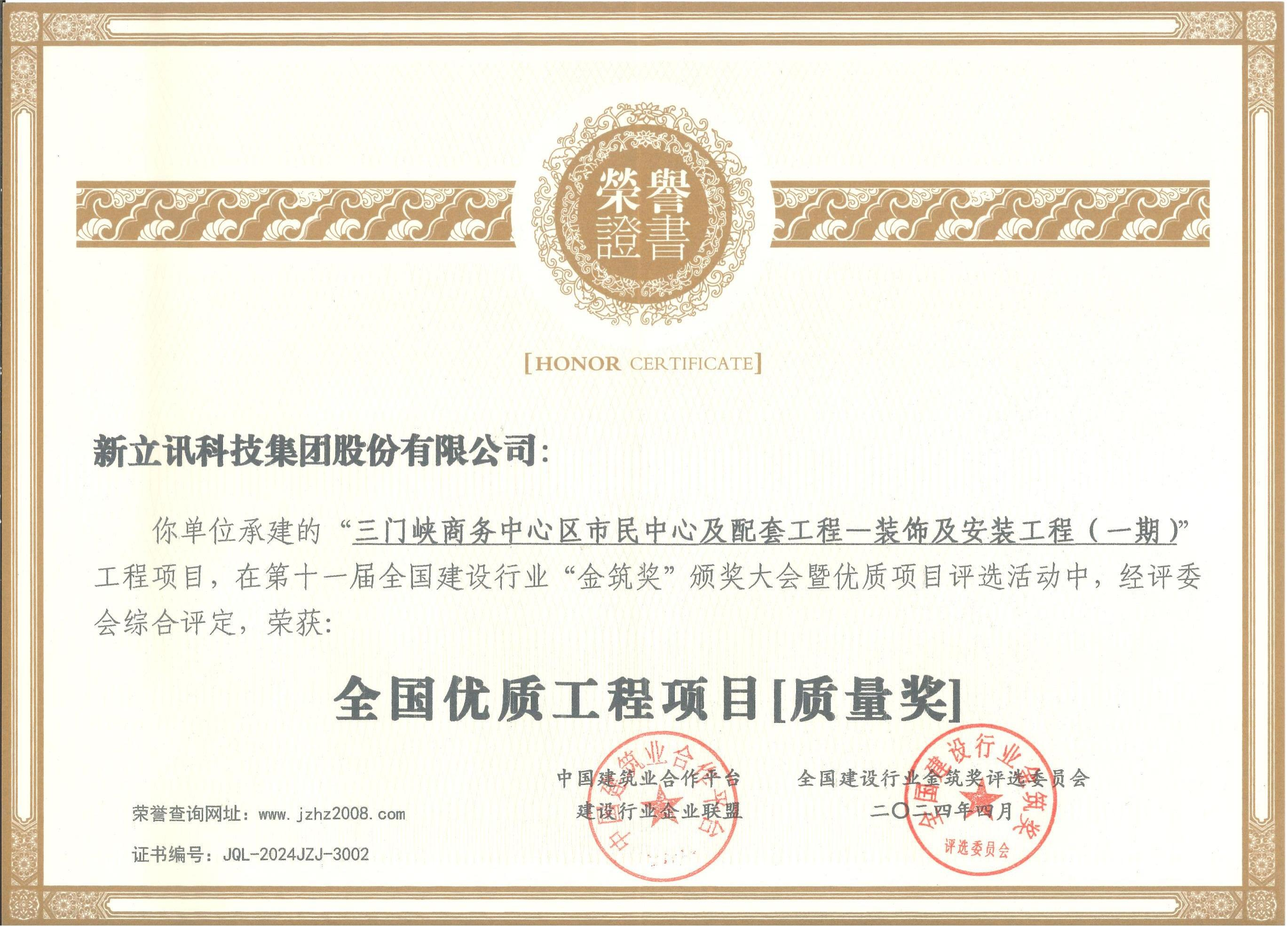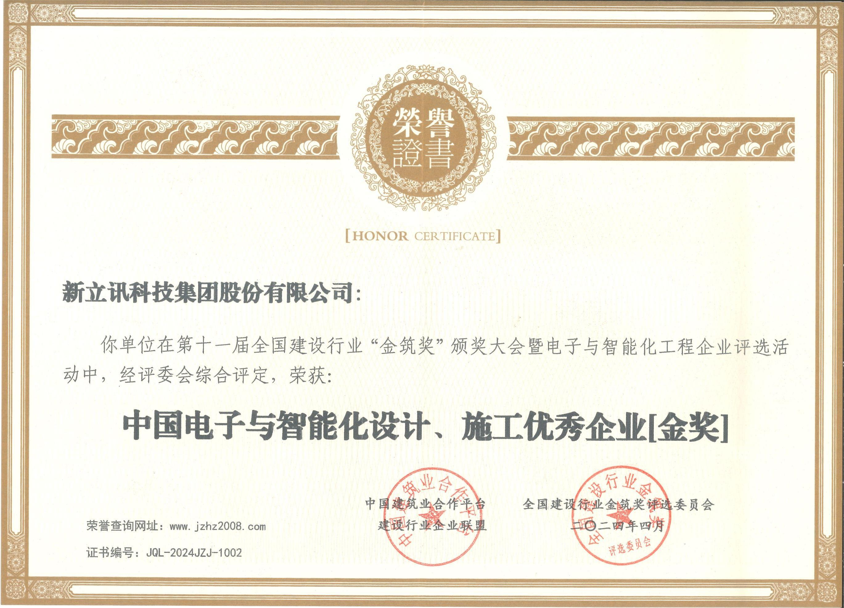 在近日舉行的第十一屆全國建設(shè)行業(yè)“金筑獎(jiǎng)”評(píng)選活動(dòng)中,新立訊科技集團(tuán)獲榮獲“中國電子與智能化設(shè)計(jì)、施工優(yōu)秀企業(yè)金獎(jiǎng)”和“全國優(yōu)質(zhì)工程項(xiàng)目質(zhì)量獎(jiǎng)”雙項(xiàng)。全國建設(shè)行業(yè)“金筑獎(jiǎng)”評(píng)選活動(dòng)是國內(nèi)建筑行業(yè)極具權(quán)威性和影響力的獎(jiǎng)項(xiàng)之一。
